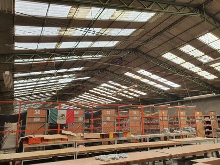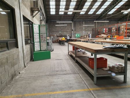 Nave industrial que cuenta con edificio de oficinas en 2 niveles, en planta baja cuenta con 6 oficinas, 1 oficina abierta con espacio para dos escritorios, 2do piso podrás encontrar espacio de recepción, 4 oficinas, también cuenta con espacio abierto de bodega, 9 autos techados, y patio de maniobras.