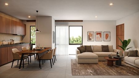 Distribución Perfecta: Sala, comedor y cocina integrados para tu comodidad.