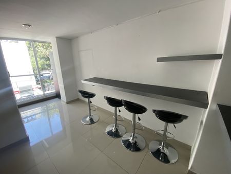 Cuenta con una sala de juntas, 1 privado con baño, 3 casetas telefónicas, 1 medio baño, terraza, el mobiliario se adquiere aparte, ideal para pequeño call center, cuenta con un área para alimentos acondicionada con vasos y tazas.
