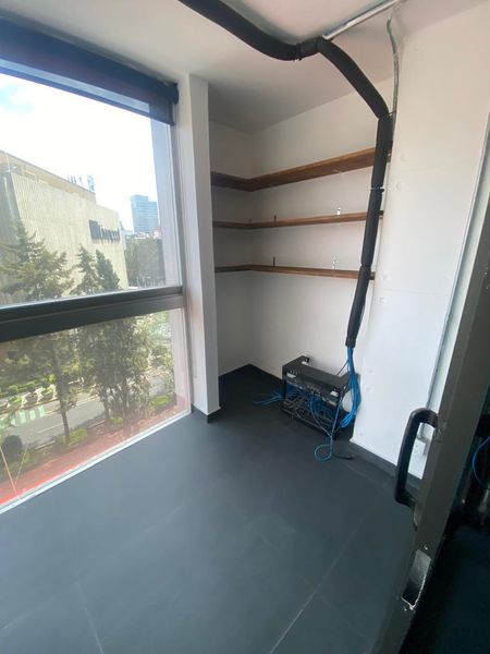 Cuenta con area abierta, 6 privados, sala de juntas, site, terraza, baños para hombres y mujeres dentro de la oficina.