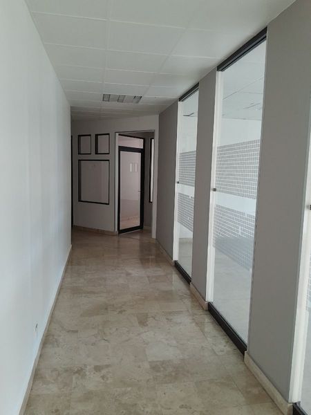 Cuenta con 677m2 distribuidos e la siguiente manera, recepción, 12 privados. despacho principal con espacio para sala de juntas, terraza privada y 4 áreas grandes para colocar estaciones de trabajo. La altura de 4mts