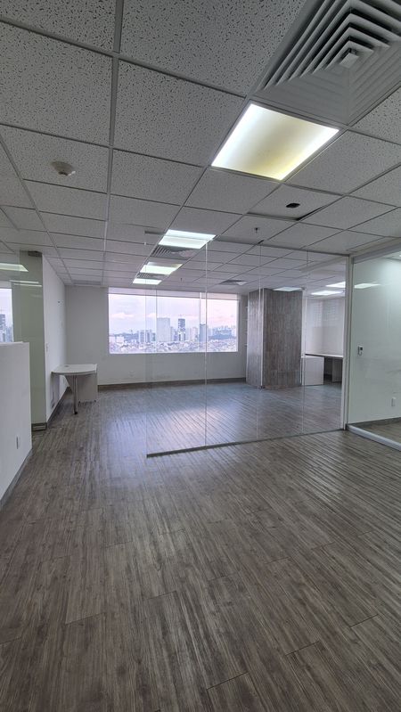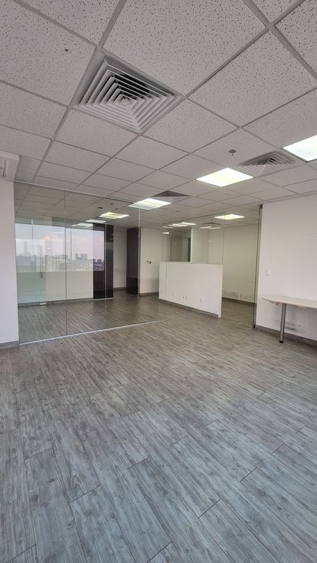 La oficina tiene de 100m2 con 3 lugares de estacionamiento.