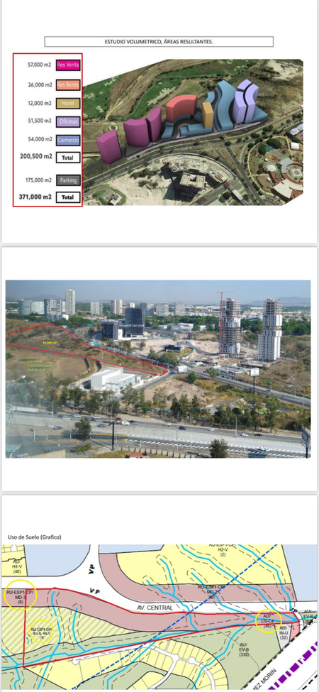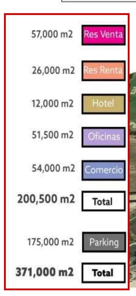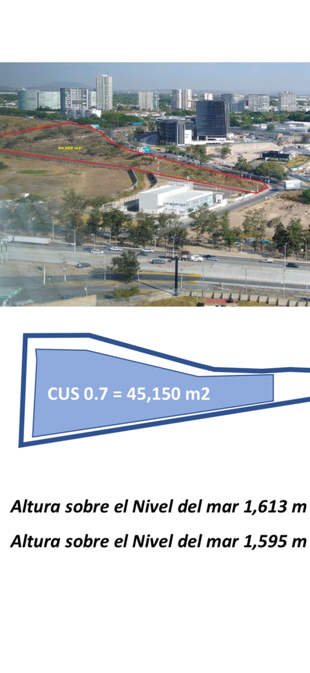 De los 50,000 m2 se puede vender para desarrollar en 9 macrolotes de diferentes medidas, el precio de esta ficha técnica se refiere al macrolote #9 el cual tiene una superficie de 1,950 m2. Se puede construir hasta 3 veces la superficie de terreno,este CUS bajo contrato,ver el estudio volumetrico.