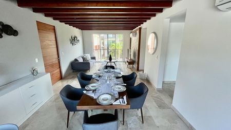 Contamos con 42 departamentos de 2 Recámaras y 2 Baños, para entrega inmediata, con un diseño Boho Mediterráneo, el cual combina maderas, paredes claras, piedra Maya y losas catalanas, equipados con :