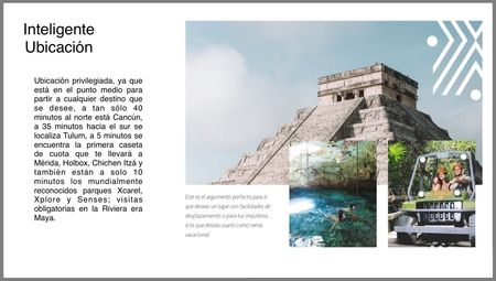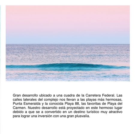 Gran desarrollo inmobiliario ubicado en el corazón de la Riviera Maya, a 7 minutos de la playa, cercano a reconocidas tiendas, restaurantes y bares, a 10 minutos de los parques Xcaret, Xplore y Senses, a una cuadra de la carretera federal, a 35 minutos de Tulum y a 40 minutos de Cancún, mejor ubicación no es posible.