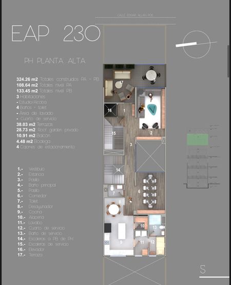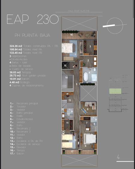 Dos pisos 324 m23 recamarasestudio4 banoscuarto de servicio38 m2 de terrazasbodega4 estacionamientos