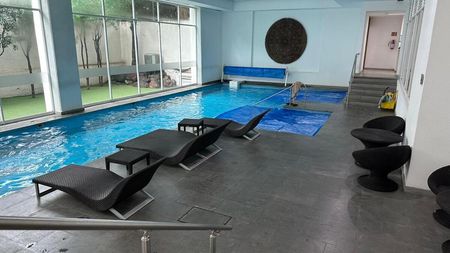 PH de 294 m2 con roof garden independiente, en dos niveles, sala y comedor con techos doble altura, cocina integral con desayunador, family room, terraza, balcón, 3 recámaras, la principal con vestidor, baño completo y terraza, las otras dos con baño completo y closet, cuarto de servicio y lavado integrados, 2 estacionamientos, amenidades, gym, alberca, salón de usos múltiples, seguridad 24 horas. En tercer piso con elevador. Mantenimiento pronto pago $7,336.02
