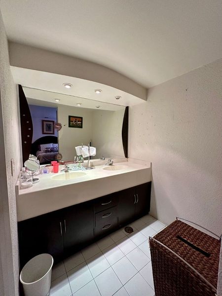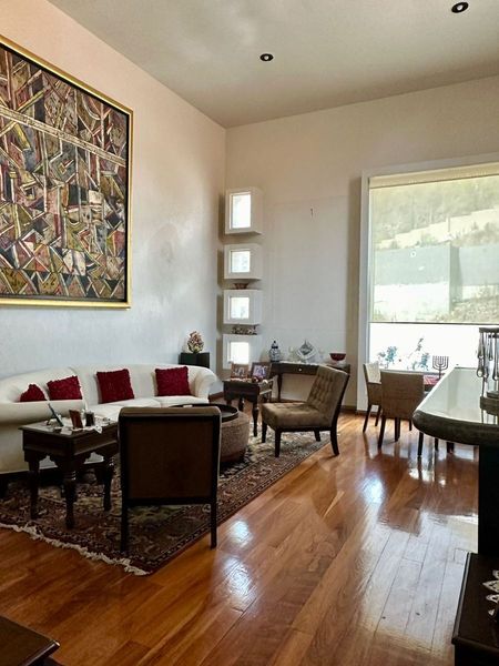Tres recamaras la principal con baño con Jacuzzi y vestidor. Las recamaras secundarias comparten baño. Medio baño de visitas.