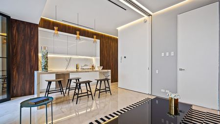 La opulencia es el estándar en Pier 57 con comodidades en la azotea que incluyen una piscina de borde estilo infinito, una terraza elevada para mayor privacidad, cabañas privadas con sistemas de entretenimiento, bar completo, instalaciones de restaurante y gimnasio con todas las funciones. Espere solo lo mejor en equipamiento de cocina y diseño italiano. La iluminación LED difusa crea un ambiente más suave y elegante en todo el espacio del condominio. Los materiales de acabado son importados y de la más alta calidad disponible.
