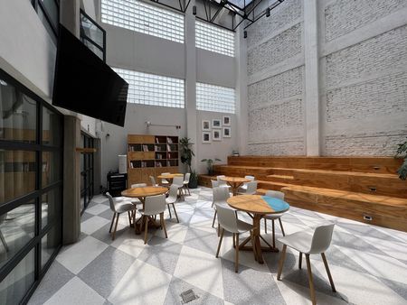 -Espacio de Auditorio ideal para capacitaciones o reuniones de todo tu equipo. Tiene capacidad para 50 personas y támbien funge como un área común. Oficina Acondicionada y Lista para Operar
