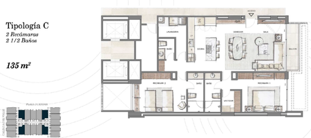 30 meses sin intereses para el saldo restante Departamentos de lujo de 2 y 3 recámaras, con espacios desde 135 m².