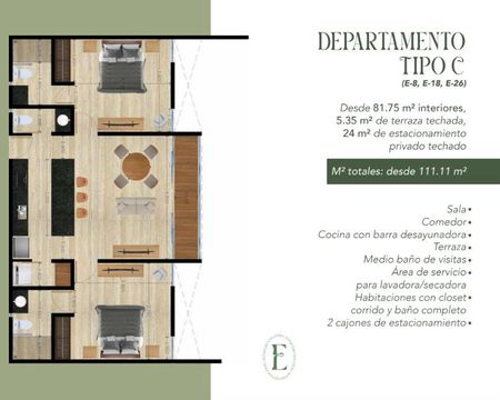 Modelo C 111.11 m2 Desde $4,355,000