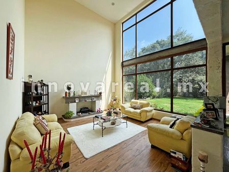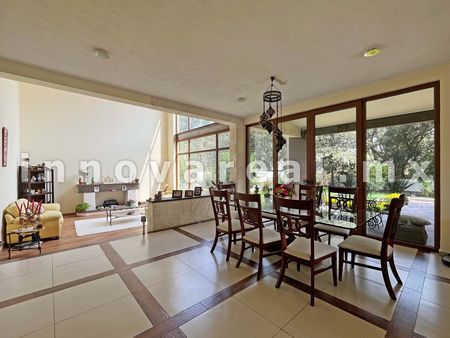 • Área de sala y comedor con techos doble altura y vista al jardín y terraza techada