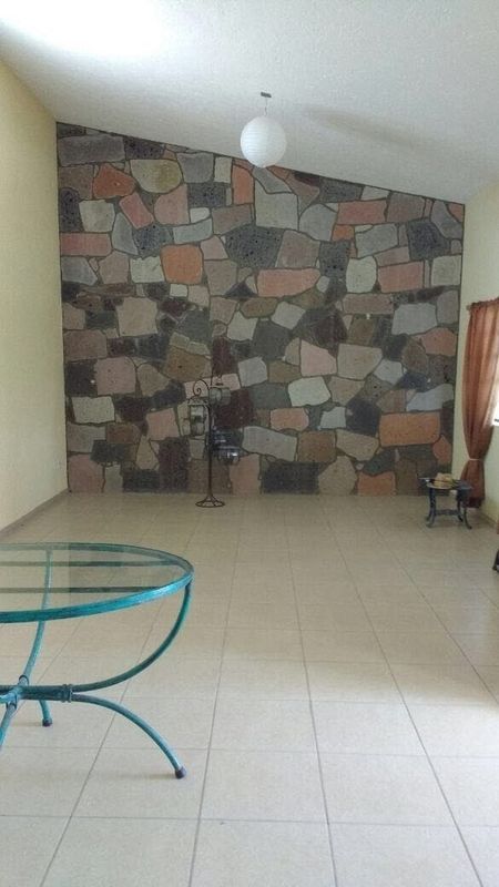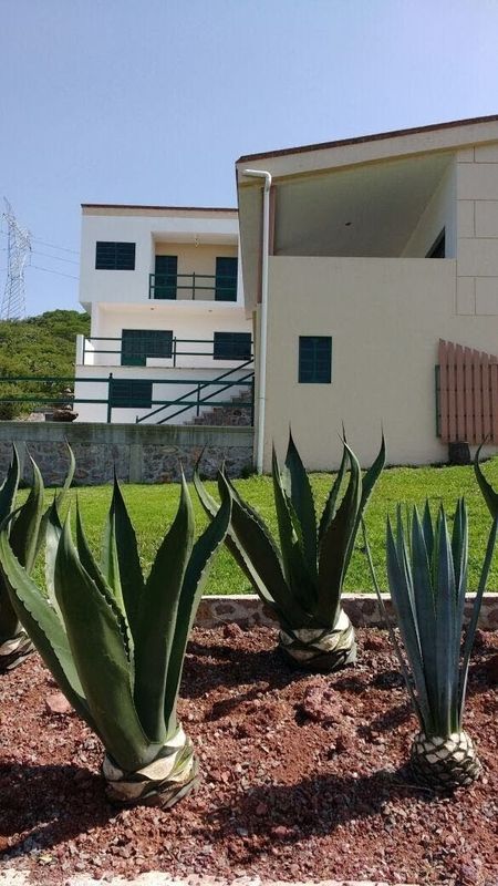 La casa tiene 550 m2 de construcción, 4 recámaras, 3½ baños, despacho, garaje techado para 1 auomóvil y un terreno de 9,000 m2 con árboles frutales, nopales y cactus de la región.
