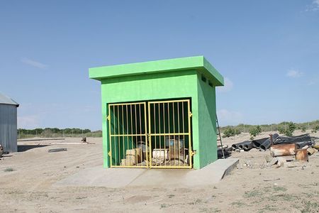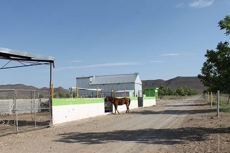 70 higueras de higo negro, 1 granero de 25 x 8mts (bodega), 1 habitación para moler forraje, 1 cuarto Diesel de 3 x 3 de block, plaza y firme, 2 corrales de block con baño para ganado, 2 corrales para borregas de acero, 6 corraletas (jaulas) para perro con malla ciclónica, 4 caballerizas de block, firme y techo, cerco de estructura con tubo de acero para resguardar maquinaria, casa con sala, comedor, cocina, 1 recámara, baño completo, oficina o segunda recámara, baño exterior y lavandería (todos los servicios), iglesia con bancas de madera y altar, 2 palapas (asador, estufa, tarja, hielera) sombra de acero y lamina, malla venadera de cerco para nogales de 2.5mts de alto de tubería de acero inoxidable en su alrededor dando una distancia de 2.4 km, transformador.