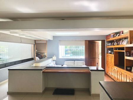 Casa en perfectas condiciones, remodelada con 3 recámaras, cada una con su baño y vestidor, living room con terraza, vista muy bonita, sala comedor, amplia cocina, antecomedor, bar, mesa de juego, baño de visitas, closet de blancos, jardín de 200m2. Cuarto de servicio, cuarto de lavado, 2 bodegas en la azotea, tendedero y 4 estacionamientos.
