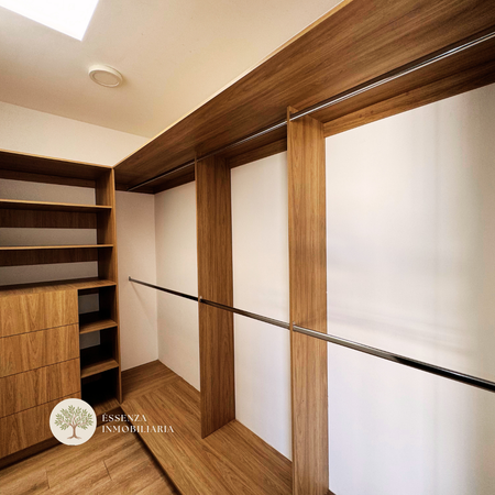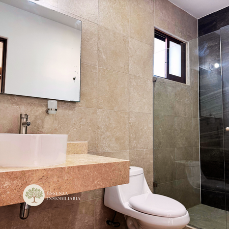 La recámara principal cuenta con amplio vestidor de excelentes materiales, baño de granito con hermoso diseño que le da un toque elegante, además cuenta con cancel de vidrio templado y aluminio.
