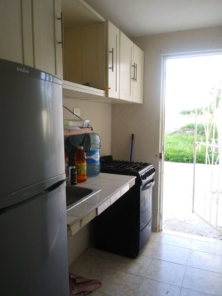 Comedor, 1 cama matrimonial, 1 AA, Cocina con refrigerador y estufa, mosquiteros y protectores en ventana y puertas.