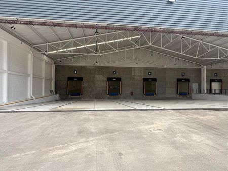 -ANDENES: 8 andenes dock-high (1.20 m.) equipados con bumpers, rampas niveladoras y cortinas. 1 entrada de acceso vehicular equipada con cortinas para camionetas