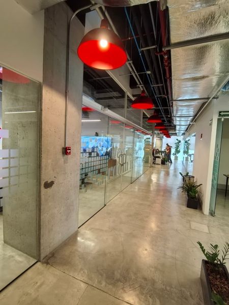 El espacio disponible se localiza en el piso 16 con una superficie de 440m2 rentables, con la siguiente distribución Amplia Recepción, 13 privados de los cuales son , dos salas de juntas para 10 personas, área de cocina equipada, incluye el derecho a 14 estacionamientos fijos, Cuneta con piso, cemento pulido, divisiones de cristal , tiene aire acondicionado, lámparas