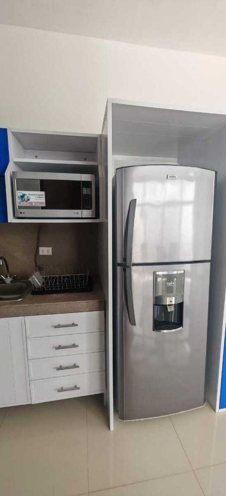•Cocinaequipadaconparrilla eléctrica, campana de extracción, Tarja y Alacena