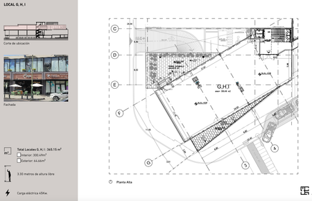 Estos espacios suman una superficie total de 365.15 m², distribuidos en 300.49 m² interiores y 64.66 m² de área exterior, ideales para terrazas o atención al público al aire libre. Cuentan con una altura libre de 3.30 metros y una carga eléctrica de 45 kW, lo que los hace perfectos para restaurantes, boutiques, showrooms o franquicias premium que buscan presencia en una ubicación estratégica.