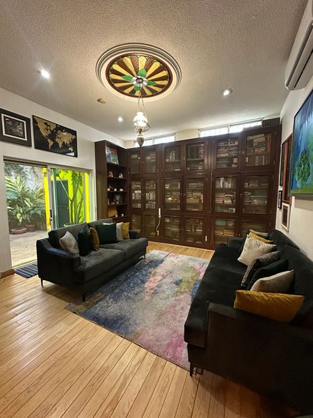 Diseñada para la vida social y de negocios. Cuenta con un elegante recibidor, sala, comedor, biblioteca con una excepcional cava subterránea, oficina con baño completo, sala de estar y cocina integral con cubierta de granito.