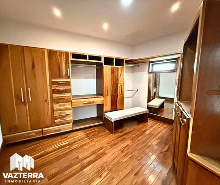 Pisos de duela de madera natural Tzalam, puertas, escaleras y zoclos en nogal, vestidores en cedro y una carpintería de alta calidad que realza la calidez y el estilo contemporáneo del hogar. Servicios inteligentes