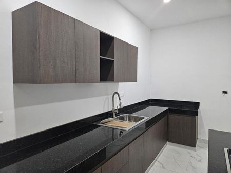 Carpintería en cocina gavetas inferiores y superiores, meseta de granito, parrilla de gas de 4 quemadores y campana, Horno de Microondas y Convección
