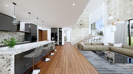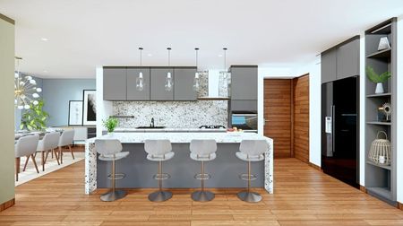 Amplia Cocina-Comedor y Sala con concepto abierto