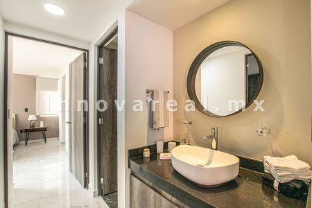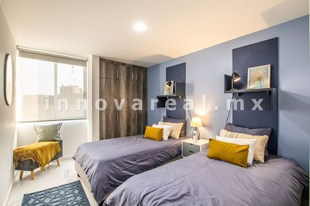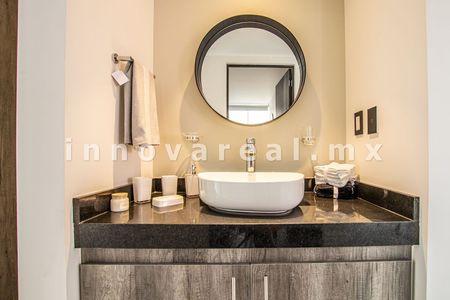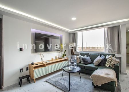 Equipado con sistema inteligente de cerradura principal y sistema de alumbrado que puede controlarse desde aplicaciones de teléfonos inteligentes y ALEXA. Bonitos acabados en baños, cocina (cancelería de cristal y aluminio y cubiertas de granito) y todo el departamento.