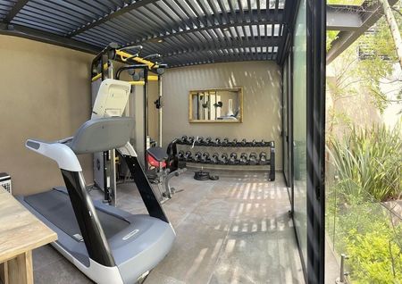 Cuarto de juegos / gym en la parte trasera del jardín, ideal para reuniones con amigos o familiares que se une con el jardín para asados