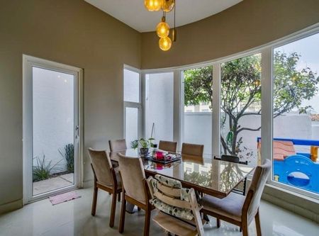 Hermosa casa en conjunto residencial Fiesole, sobre av. club de golf Interlomas, a tan solo unos pasos de paseo Interlomas, cerca de hospitales, colegios, universidades, centros comerciales, una de las zonas mas exclusivas y con gran plusvalía de Huixquilucan, casa con doble seguridad en un conjunto de solo 10 residencias, 451m2 con una gran e iluminada estancia de doble altura con un ventanal de piso a techo y vista al jardín, recibidor, gimnasio con baño, family room, 3 recamaras, cada una con baño y walk in closet, la principal con un espectacular baño contina y doble vestidor, y balcón, cocina integral con isla y barra de granito, lavavajillas, doble despensa, desayunador con salida al jardín , área de lavado, cuarto con baño y puerta de servicio, garage para 3 autos, el residencial cuenta con alberca y salón de eventos, vigilancia 24/7