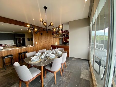 Departamentos de 2 y 3 recamaras, todos los departamentos son inteligentes, desde 150m2 con terraza, hasta 289m2 con terraza, los departamentos cuentan con mármol en pisos y baños y madera de ingeniería, cuentan con una estancia amplia y muy iluminada, una sala de tv, una terraza que le da gran amplitud y luz al departamento, una cocina integral enorme con barra de cuarzo, una amplia área de lavado, cuarto con baño de servicio, baño de visitas y 2 o 3 recamaras, la principal con baño y vestidor, las secundarias con baño y closet cada una, 2 o 3 lugares de estacionamiento, Bilú cuenta con mas de 20 amenidades como alberca, jacuzzi, salón de fiesta, asadores, gimnasio, spa, sauna, vapor, business center, ludoteca, área de juegos, jardines con chimenea, todas las áreas comunes y jardines cuentan con internet, doble vigilancia 24/7, circuito cerrado de vigilancia, todo un sueño vivir en Bilú Bosque Real