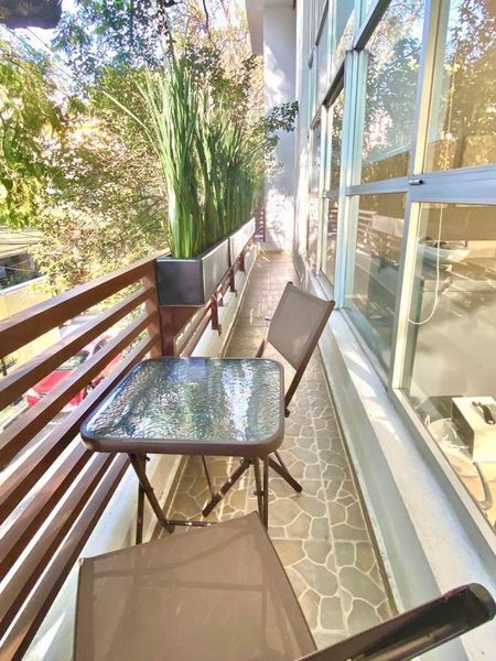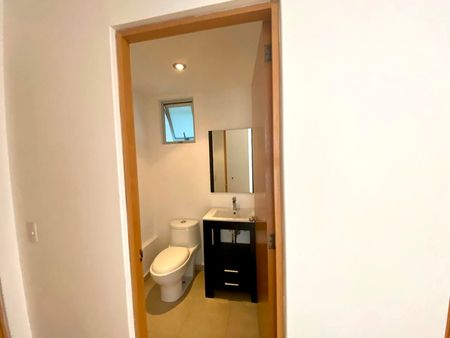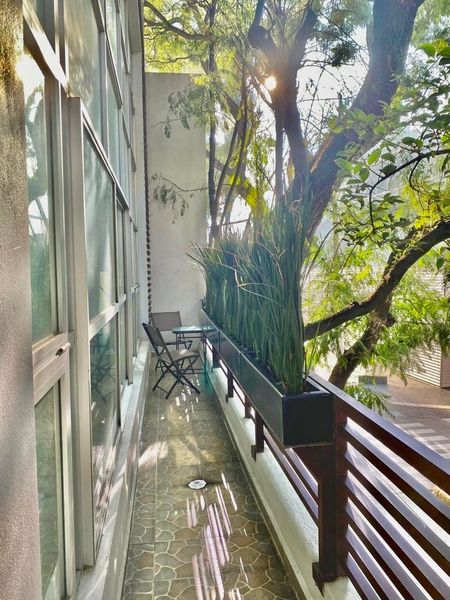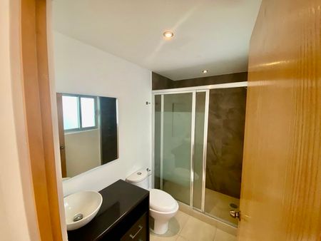 Departamento de 105m2 con una estancia amplia muy iluminada con un balcón, family room, un baño de visitas, dos recamaras la principal con baño y vestidor, la secundaria con baño y closet, cocina integral, área de lavado y un lugar de estacionamiento muy amplio, todo el departamento cuenta con vidrios anti ruido y frio, el edificio es de tan solo 4 pisos y 8 departamentos, lo cual le da mucha privacidad y seguridad, hay circuito cerrado de vigilancia y seguridad 24/7