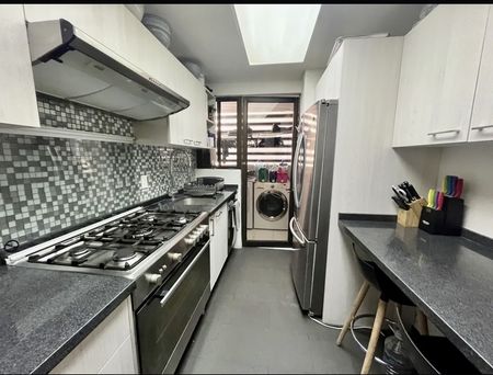 con un a superficie de 130m2 muy iluminado con una vista bonita con una estancia amplia, baño de visitas, cocina integral con barra de granito, 3 recamaras, la principal con baño y vestidor, las recamaras secundarias con closet y comparten baño, área de lavador, cuarto con baño de servicio y 2 lugares de estacionamiento!