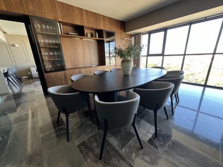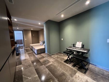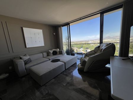 3 recámaras con baño completo y vestidor. La principal cuenta con amplios espacios y un balcón. Segunda área de T.V. o biblioteca.