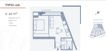 Departamento exterior con vista a calle Liverpool, 2 recámaras con clóset, sala comedor, cocina con barra, 1 baño completo. 60 m2 habitables y 8 m2 de balcón.
