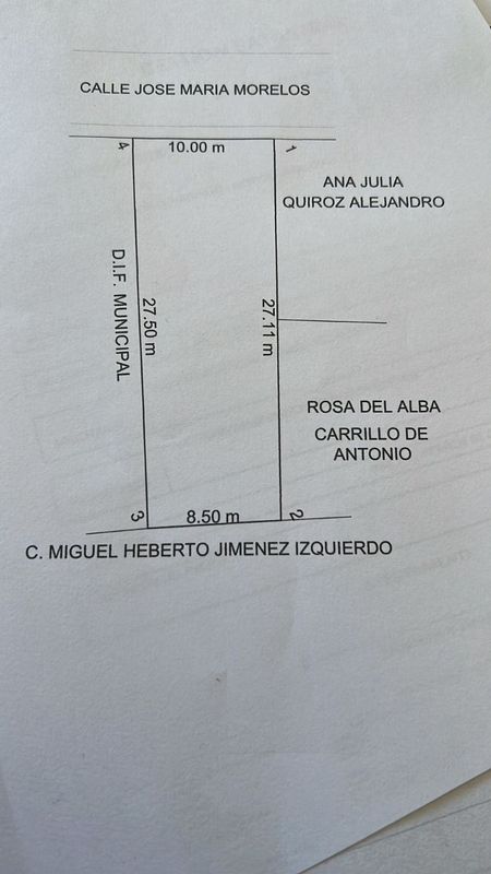 Terreno ubicado muy cerca del centro alado del DIF municipal. para uso mixto local o departamentos.