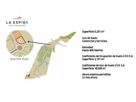 Presentamos un lote comercial de 5,251 m² en la exclusiva entrada del fraccionamiento La Espiga, una de las zonas de mayor crecimiento en Querétaro. Este desarrollo planeado de alto nivel combina vivienda, áreas comerciales, educativas y recreativas, todo dentro de una superficie de 288 hectáreas.