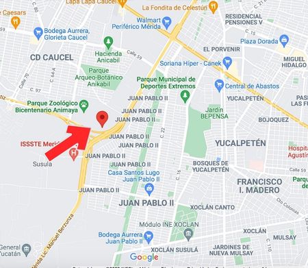 Se encuentra en la entrada a Ciudad Caucel por el lado de Animaya y la salida a Hunucmá, que es el nuevo polo de desarrollo industrial del estado con la Cervecería Modelo como base y fábricas de envases y latas para cervezas, justo al lado del terreno sobre el periférico se encuentra la agencia distribuidora y talleres de la marca de camionetas y camiones Isuzu, del grupo Farrera.