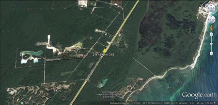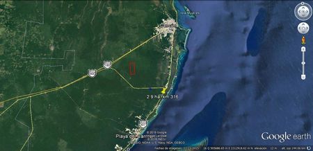 Magnifico terreno con frente de carretera, ubicado en el Km 316 de la Carretera Puerto Morelos-Playa de Carmen, aproximadamente a 6 km del pueblo de Puerto Morelos, en la Riviera Maya.