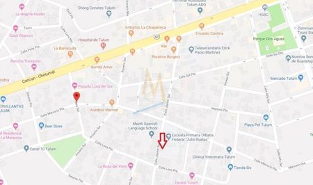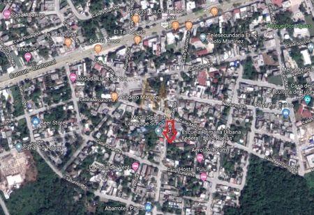 Se vende terreno en zona centro de Tulum, muy cerca de la carretera federal y la terminal del ADO, cuenta con uso de suelo mixto, tiene 498m2 de los cuales 16 metros son frente a calle Jupiter Sur. Excelente ubicación.