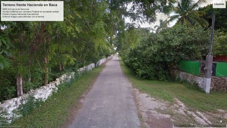 El terreno se encuentra frente a la hermosa Hacienda Kancabchen por lo que le da un entorno lleno de Paz, Tranquilidad, silencio y contemplación de la Naturaleza.