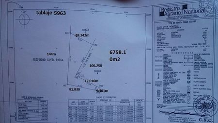 El terreno mide 6758 m2, de figura irregular.