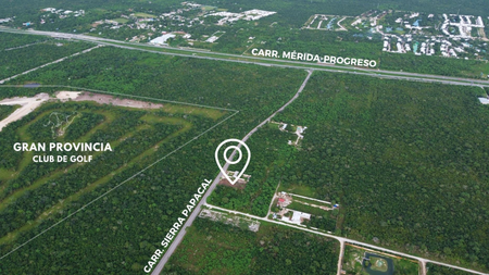 Localizado a solo 500 metros de la carretera Mérida-Progreso y en avenida principal que conecta con todas las privadas de la zona, la cual es una vía rápida permite el acceso directo hacia el terreno sin atravesar ningún poblado (carretera a Sierra Papacal).