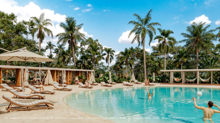 Inmerso en la naturaleza y extendiéndose por un amplio terreno de belleza salvaje, se encuentra Blü Lagün, un mosaico de agua azul turquesa y vegetación vibrante, fluyendo junto con el paisaje, mezclándose a la perfección con el panorama que lo rodea.