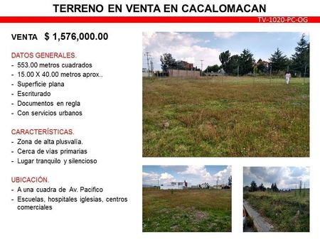 Superficie plana, escriturado, documentos en regla, servicios urbanos, zona de alta plusvalía, cerca de escuelas, centros comerciales, hospitales e iglesias.Sobre la zona: