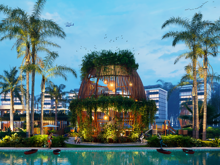 Un proyecto con diferentes tipos de amenidades que están rodeadas de vegetación y de arquitectura sustentable.