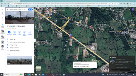 TERRENO CERCA DEL AEROPUERTO SOBRE AUTOPISTA KM. 11.5 DE LA CARRETERA VILLAHERMOSA-MACUSPANA , 290 METROS PASANDO LA DESVIACION AL AEROPUERTO , A 1 KM ANTES DEL CEDIS CHEDRAUI Y A 600 METROS DEL HOLIDAY INN (DEL OTRO LADO DE CARRETERA), CASI 48 METROS DE FRENTE , POLIGONO IRREGULAR DE 300 METROS PROMEDIO DE FONDO, TOTALMENTE PLANO. SE TRATA DE DOS LOTES JUNTOS LA SUMA DE AMBOS ES DE 24885.3 M2